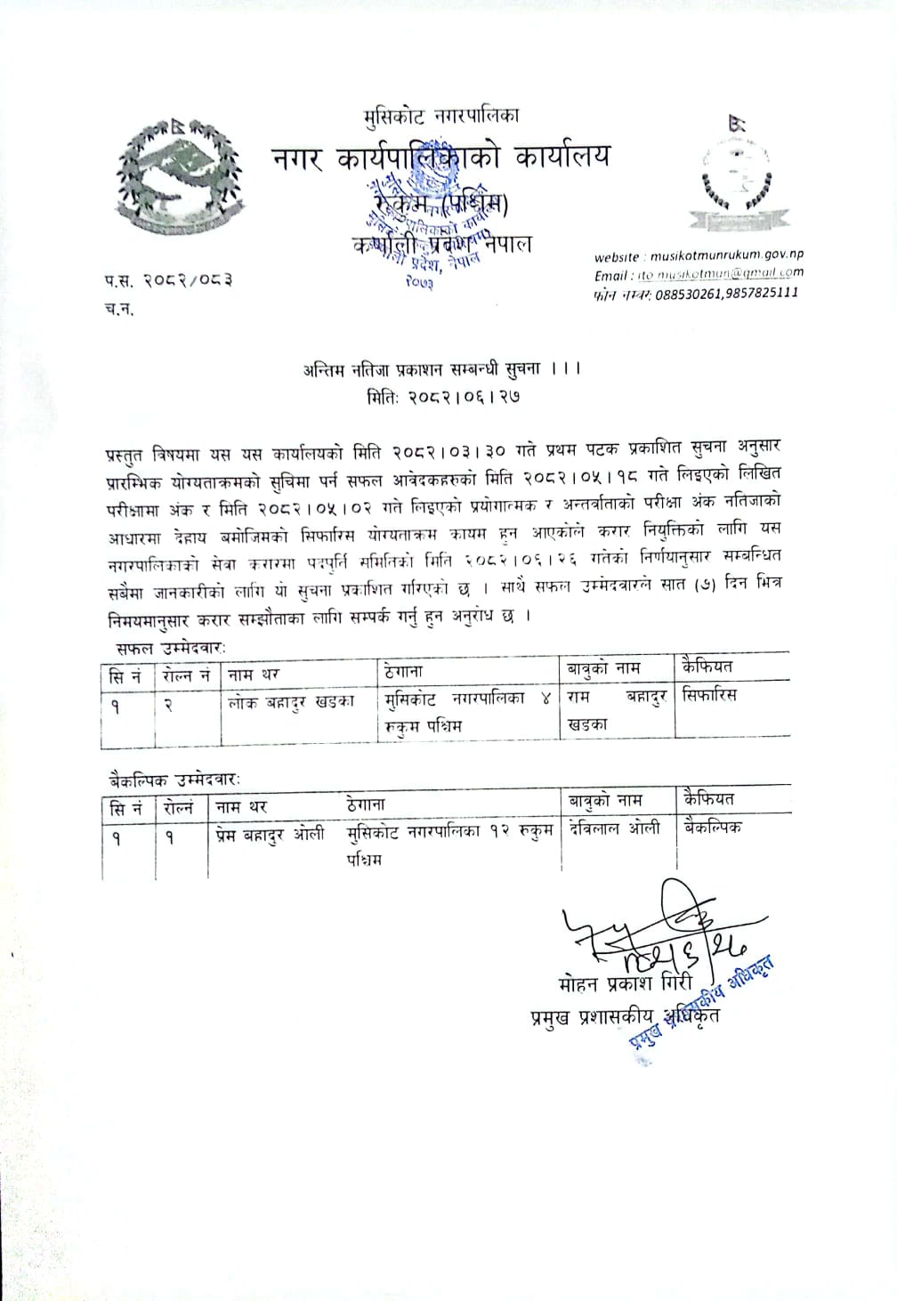 अन्निम नतिजा प्रकाशन सम्बन्धी सुचना
